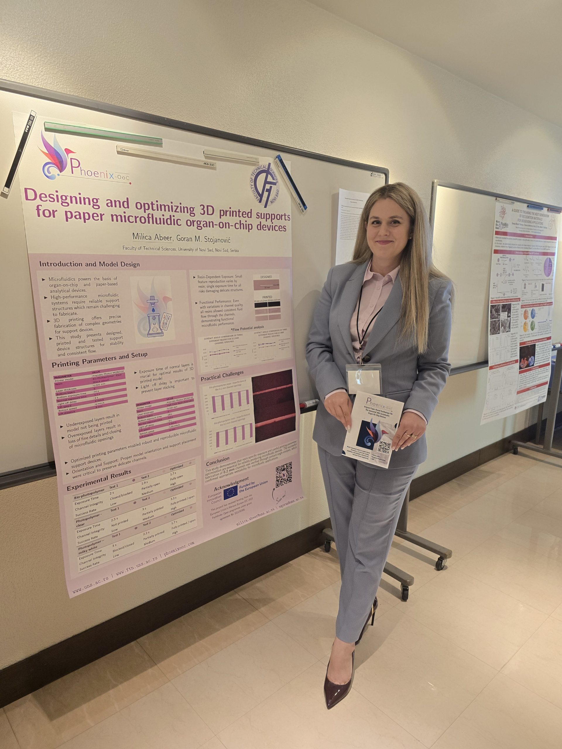 During the conference, Milica presented a poster showcasing her ongoing research within the Phoenix-OoC project. The presentation focused on microfluidic concepts and potential applications of her work. The poster drew great interest from attendees, sparking insightful discussions and valuable feedback.
